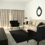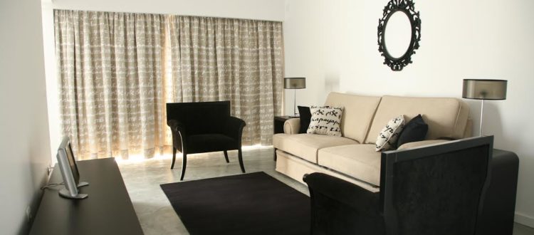 Suite decorada em estilo moderno com área de estar com sofá cama, muito confortável com varanda, vista jardim. Quarto equipado com mini-frigorifico.
